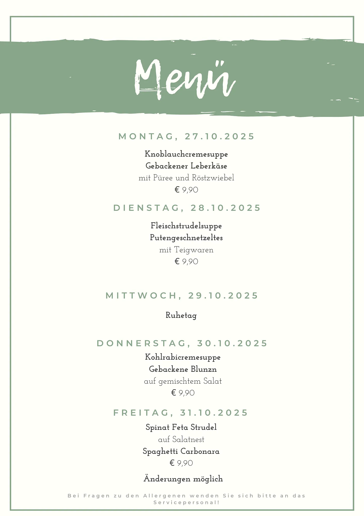 Für alle unsere Produkte verwenden wir Saisonales aus der Region. Abwechslungsreiche Tagesmenüs unterstreichen die Vielfalt unseres Speisenangebots. Und hier geht’s zu unserer Speisekarte.
